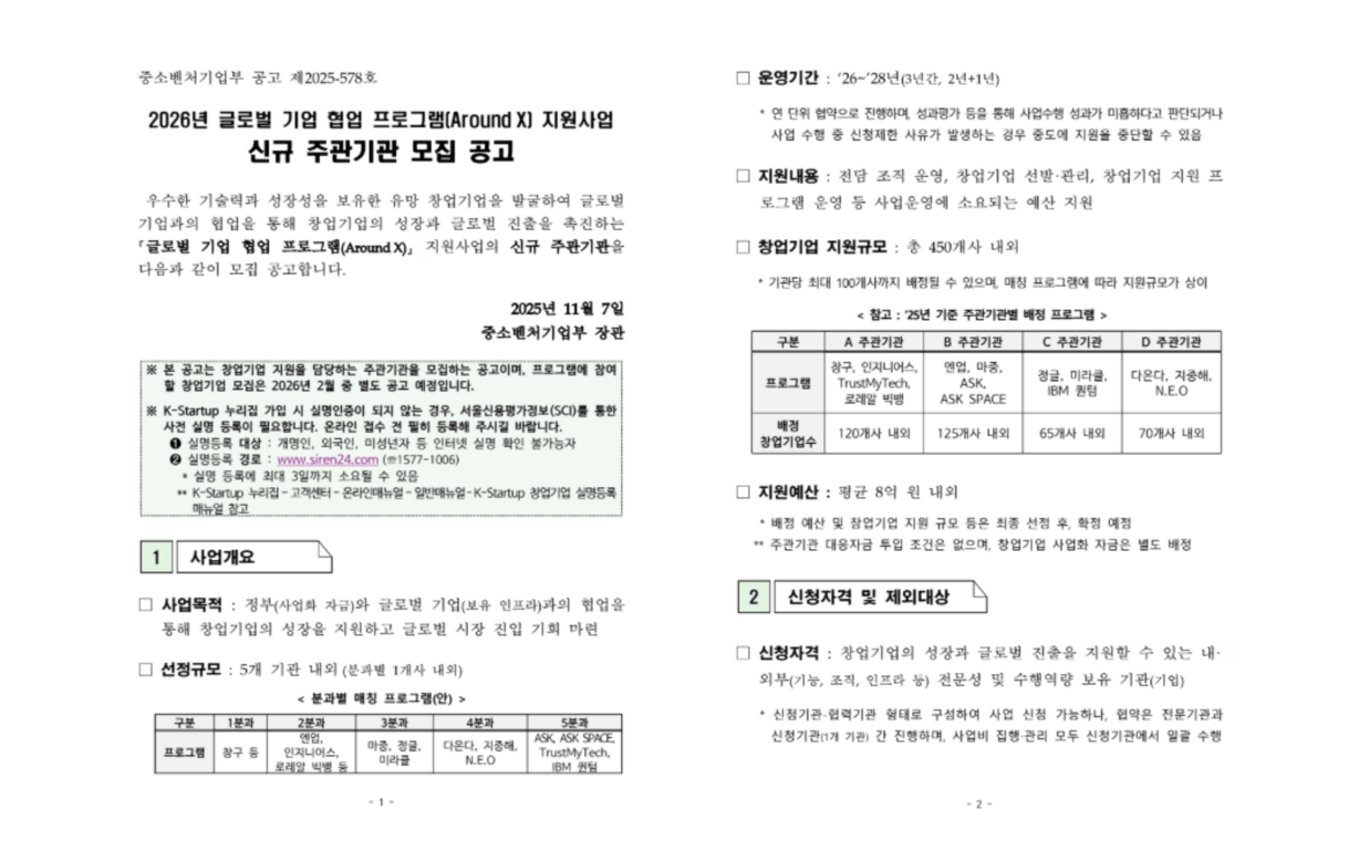 [전국] 2026년 글로벌 기업 협업 프로그램(Around X) 지원사업 신규 주관기관 모집 공고