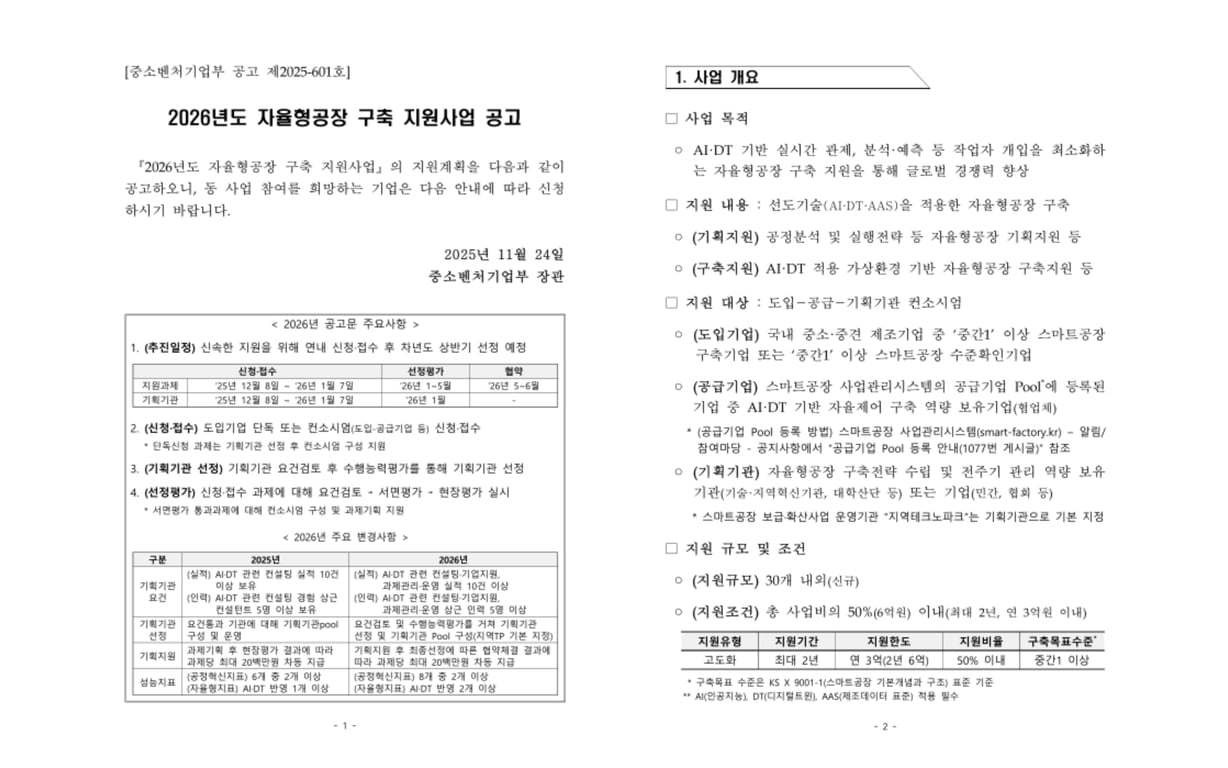 | 사업명 | 2026년 자율형공장 구축 지원사업 |