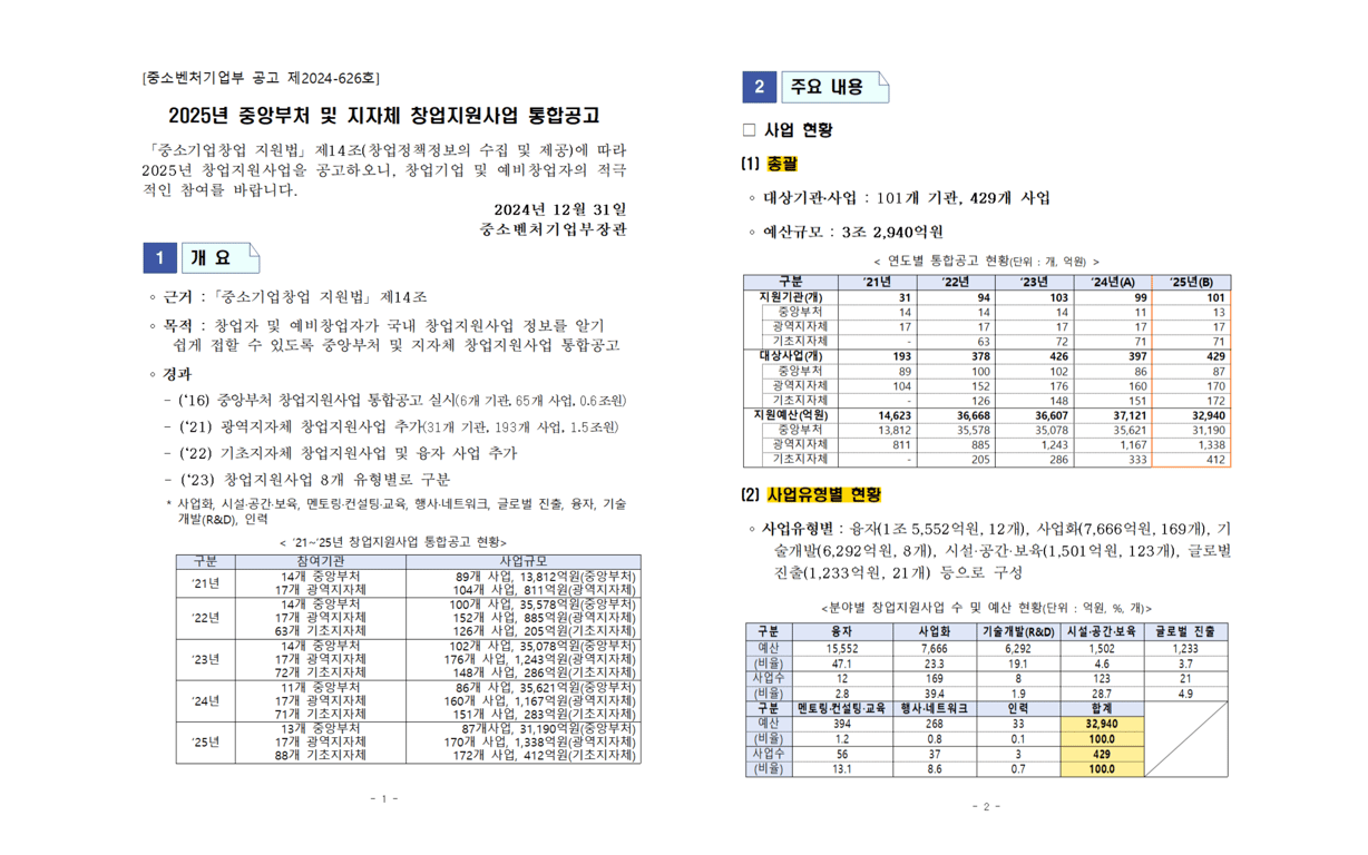 2025년 중앙부처 및 지자체 창업지원사업 통합공고