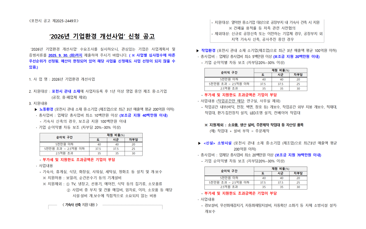 [경기] 포천시 2026년 기업환경 개선사업 신청 공고