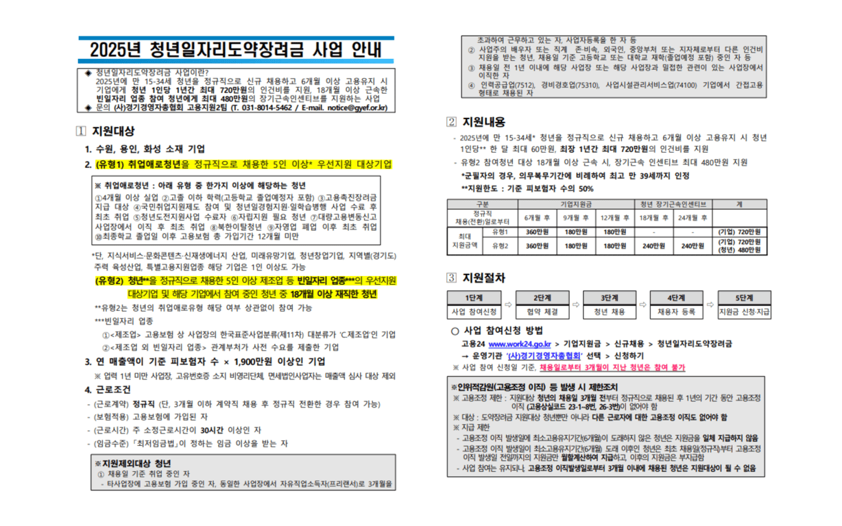 [수원, 용인, 화성] 2025년 청년일자리도약장려금 사업