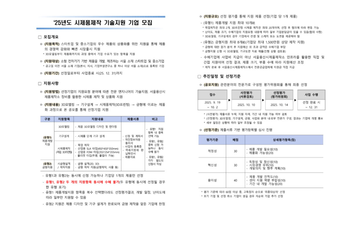 [서울] 2025년 시제품제작 기술지원 기업 모집 공고